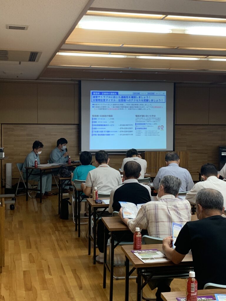 9/1(火)19時から伏見台公民館にて「水害ハザードマップに関する説明会」を金沢市役所 土木局 内水整備課の方2名を講師に迎え開催しました。